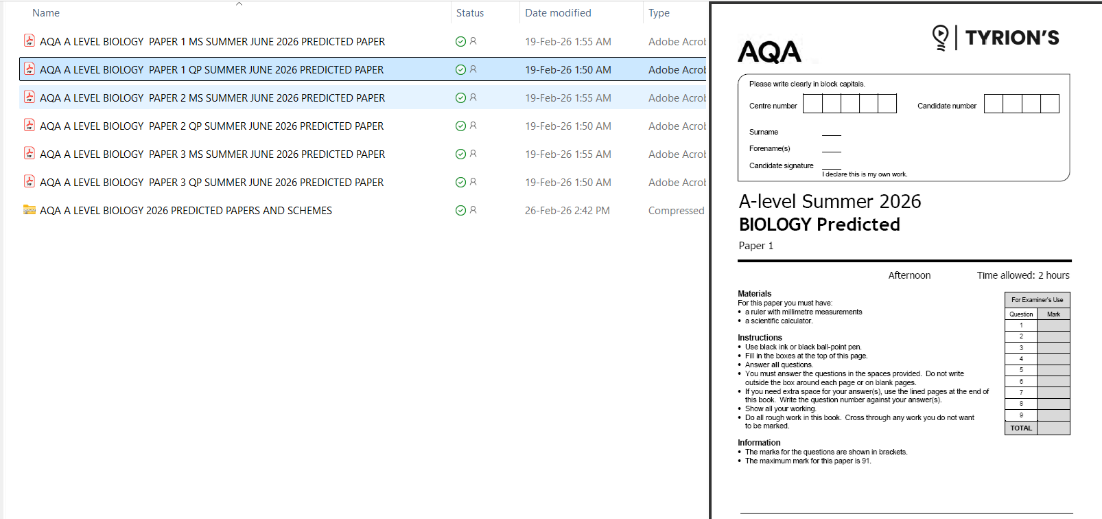 Used the predicted paper for AQA Biology. I love how it tests exactly what I was unsure about. Helped me revise properly instead of randomly cramming.