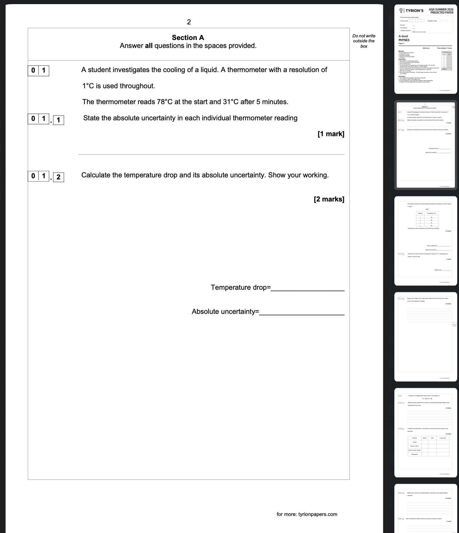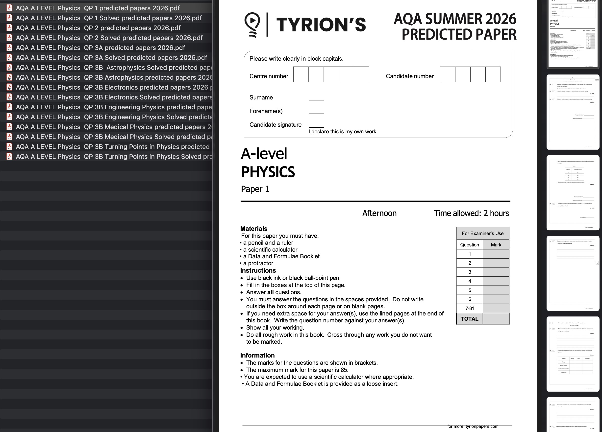Boost your exam preparation with the AQA A Level Physics 2026 Predicted Papers. Designed for students aiming for top grades, this comprehensive resource features practice questions that mirror the style and content of the upcoming exams. Each paper is carefully crafted to help you identify key topics, enhance your understanding, and build confidence. Ideal for revision sessions or self-study, these predicted papers are an invaluable tool to ensure you’re fully prepared for your  exam. Achieve your best with targeted practice and expert insights!