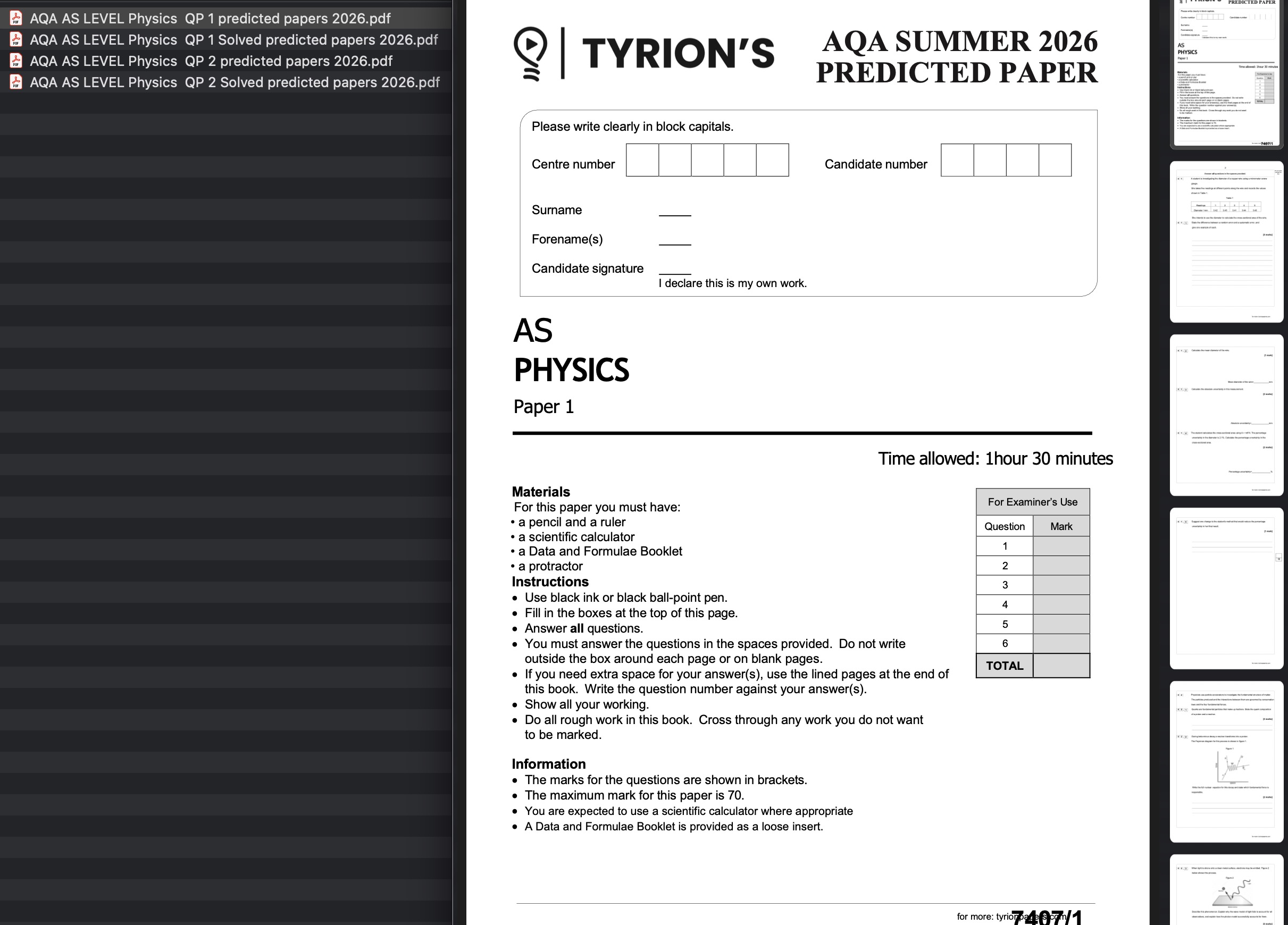 Boost your exam preparation with the AQA AS Level Physics 2026 Predicted Papers. Designed for students aiming for top grades, this comprehensive resource features practice questions that mirror the style and content of the upcoming exams. Each paper is carefully crafted to help you identify key topics, enhance your understanding, and build confidence. Ideal for revision sessions or self-study, these predicted papers are an invaluable tool to ensure you’re fully prepared for your exam. Achieve your best with targeted practice and expert insights!
