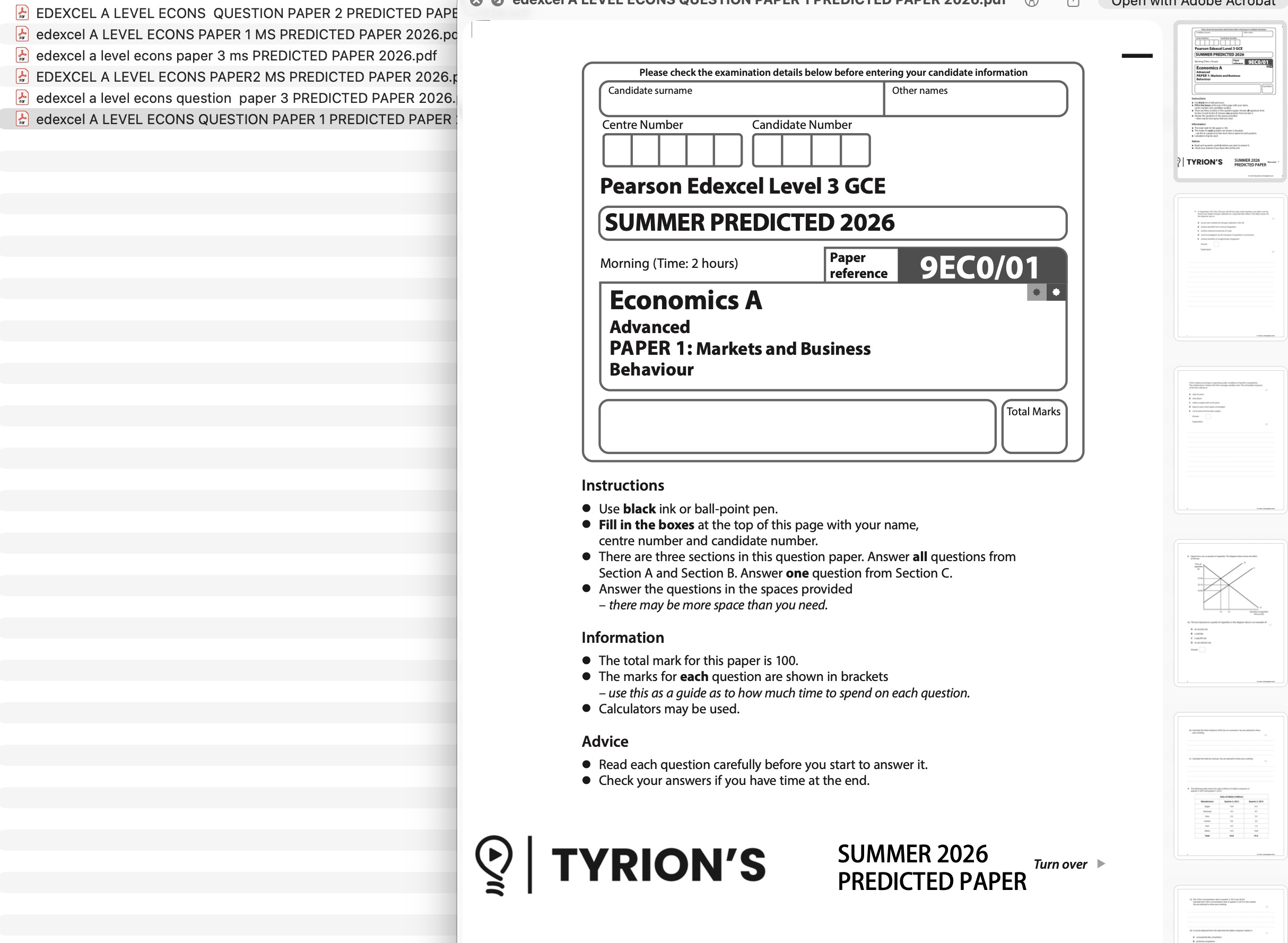 Edexcel A Level Economics 2026 Predicted Papers