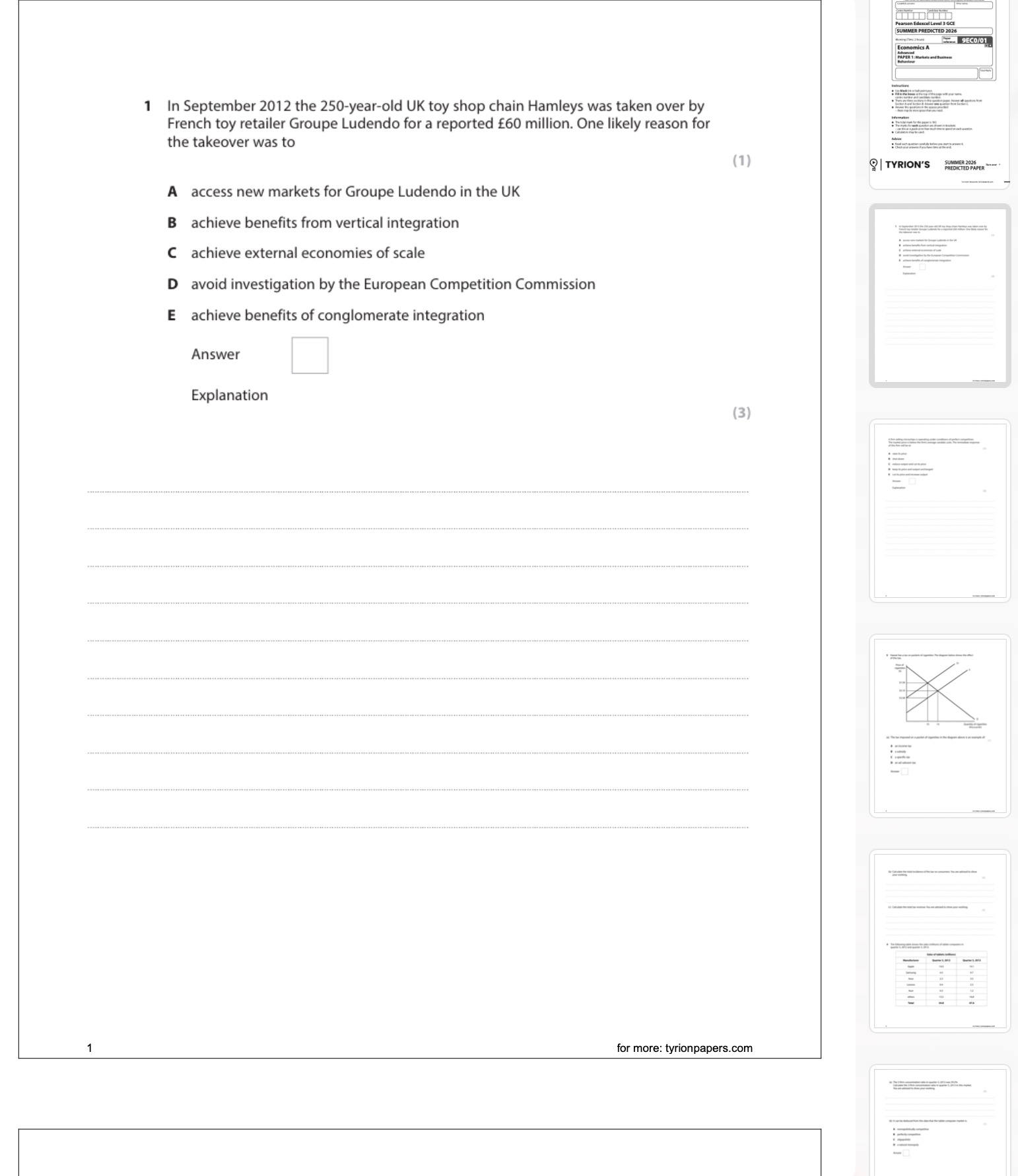 Boost your exam preparation with the Edexcel A Level Economics 2026 Predicted Papers. Designed for students aiming for top grades, this comprehensive resource features practice questions that mirror the style and content of the upcoming exams. Each paper is carefully crafted to help you identify key topics, enhance your understanding, and build confidence. Ideal for revision sessions or self-study, these predicted papers are an invaluable tool to ensure you’re fully prepared for your  exam. Achieve your best with targeted practice and expert insights!
