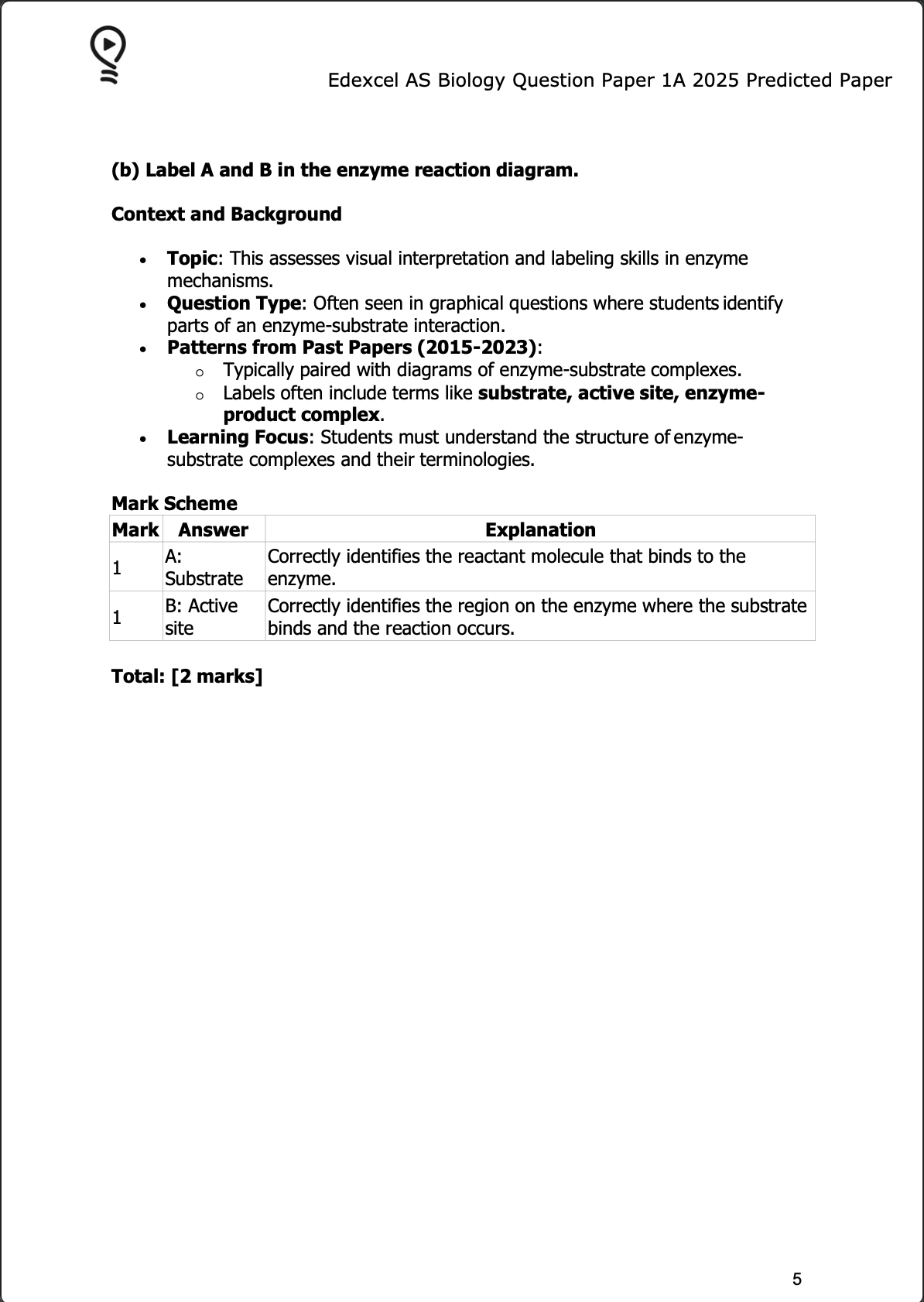 Boost your exam preparation with the Edexcel AS Level Biology A 2025 Predicted Papers 8BN0 . Designed for students aiming for top grades, this comprehensive resource features practice questions that mirror the style and content of the upcoming exams. Each paper is carefully crafted to help you identify key topics, enhance your understanding, and build confidence. Ideal for revision sessions or self-study, these predicted papers are an invaluable tool to ensure you’re fully prepared for your  exam. Achieve your best with targeted practice and expert insights!