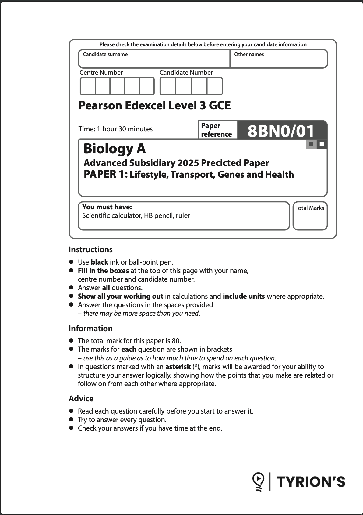 Edexcel AS Level Biology A 2025 Predicted Papers 8BN0