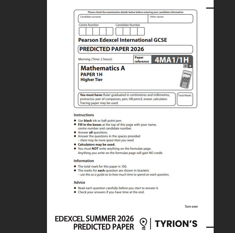 Edexcel International GCSE (IGCSE) Mathematics A Higher 2026 Summer Predicted Papers