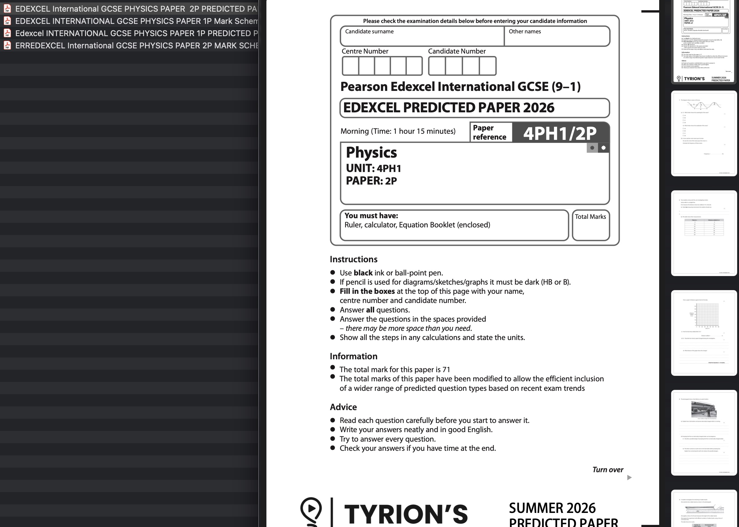 Edexcel International GCSE (IGCSE) Physics 2026 Predicted Papers