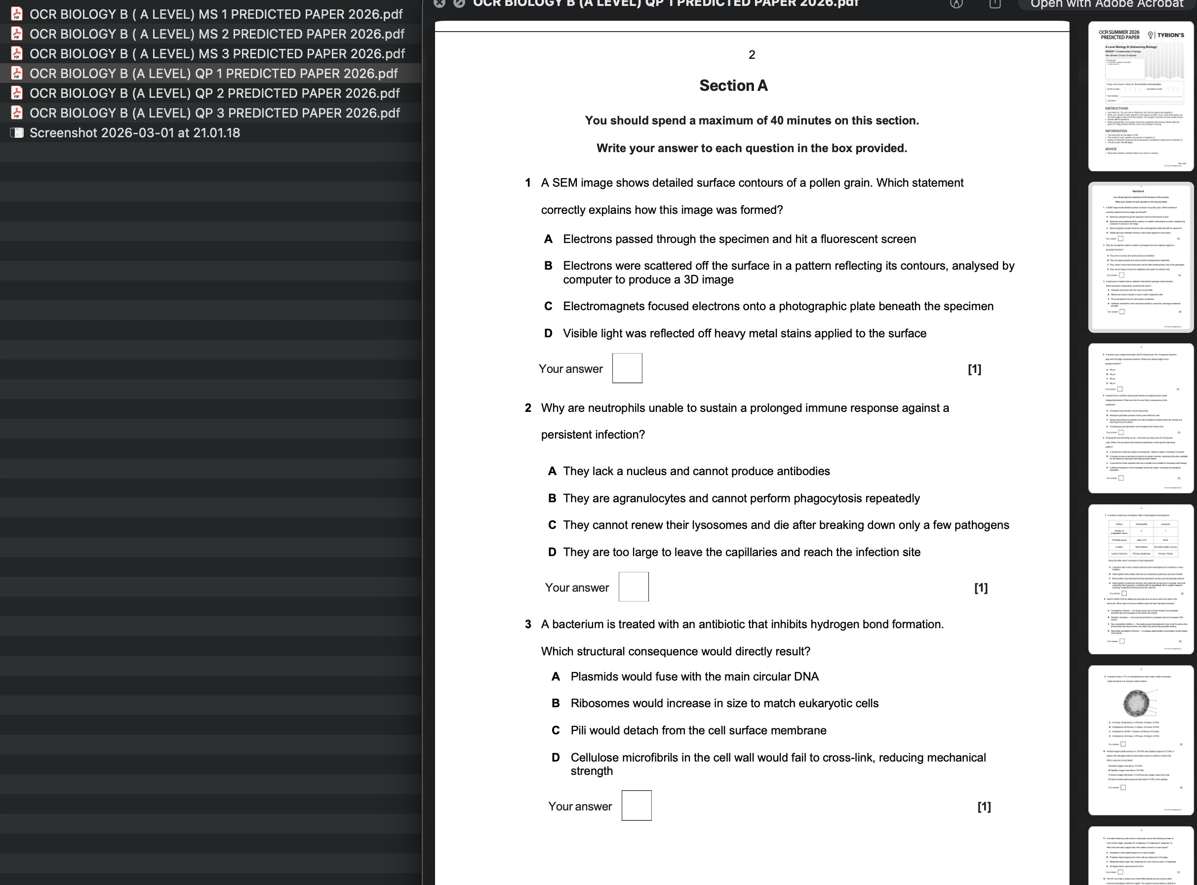 OCR A Level Biology B 2026 Predicted Papers