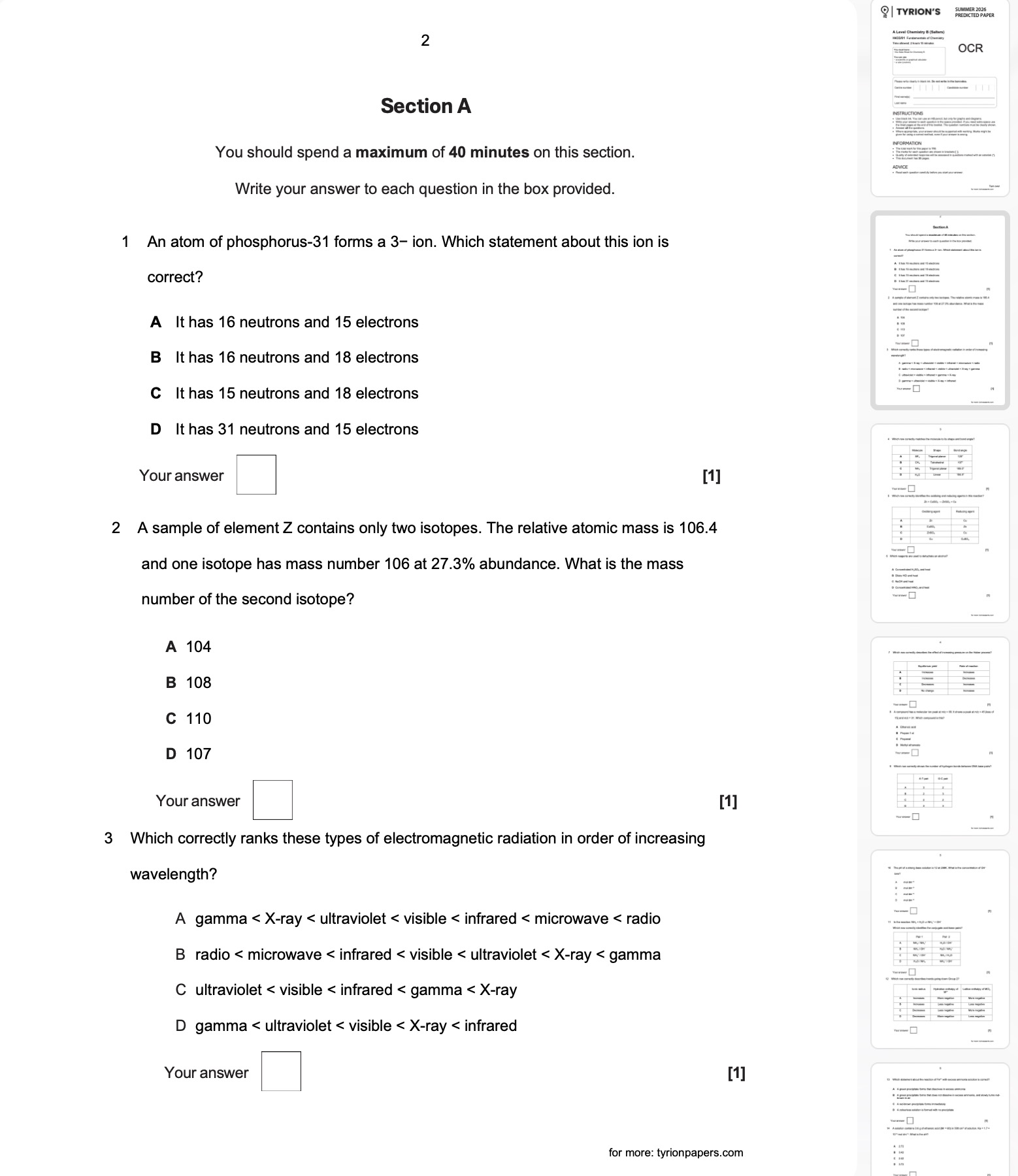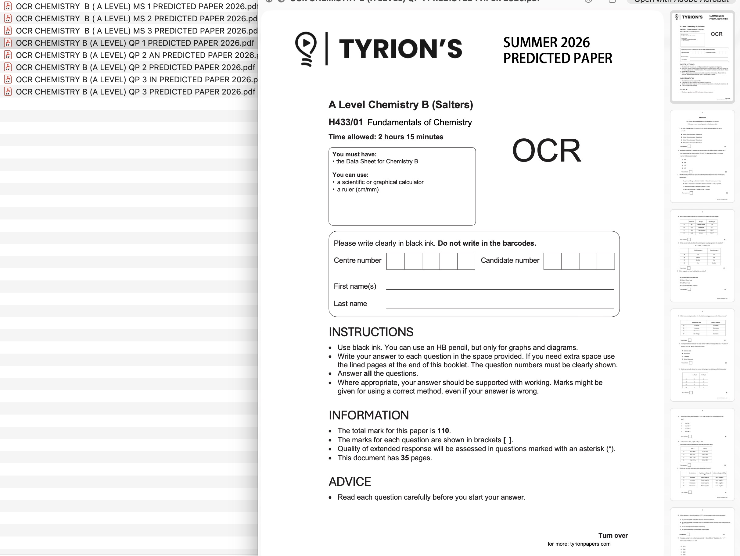 OCR A Level Chemistry B 2026 Predicted Papers