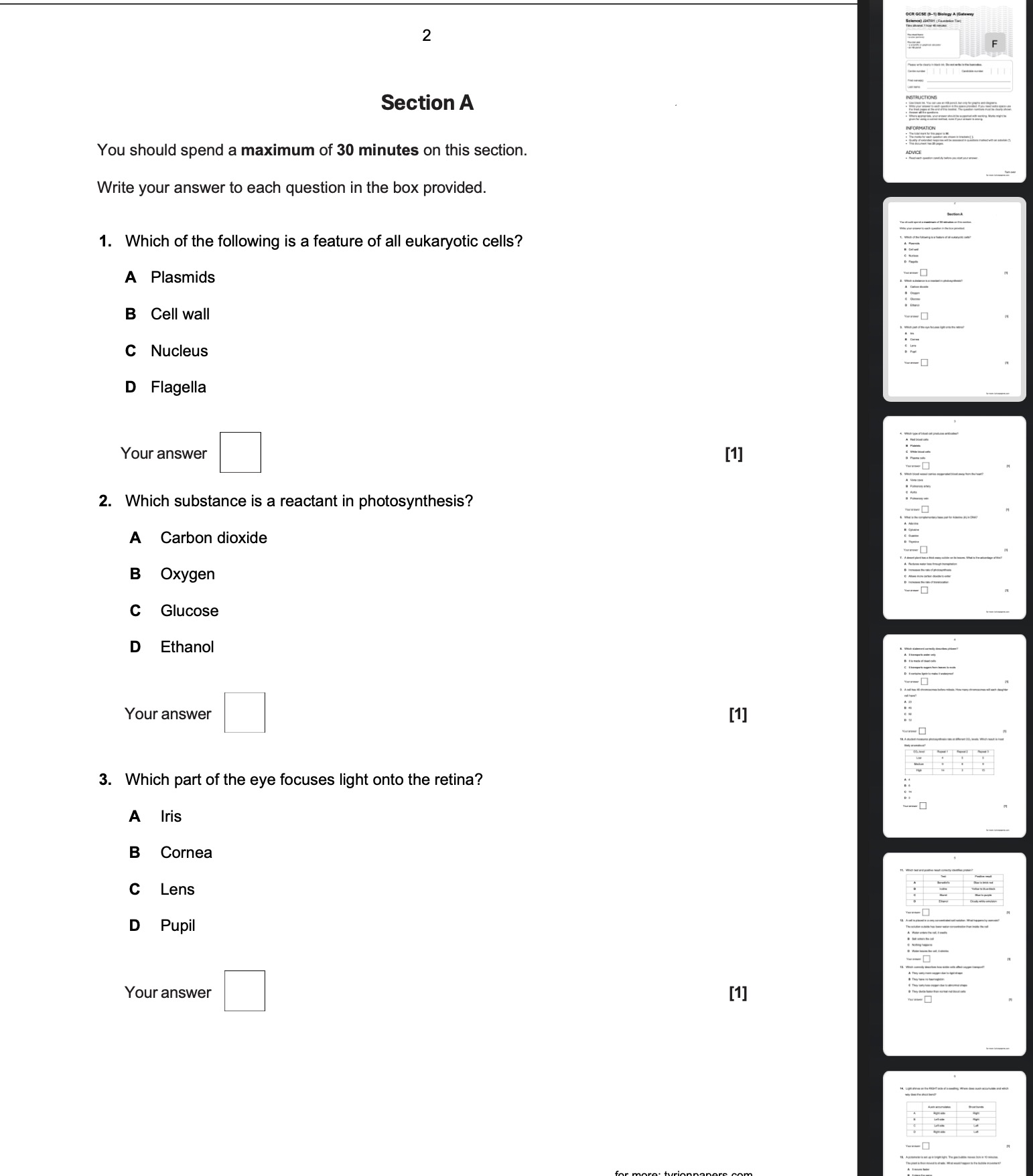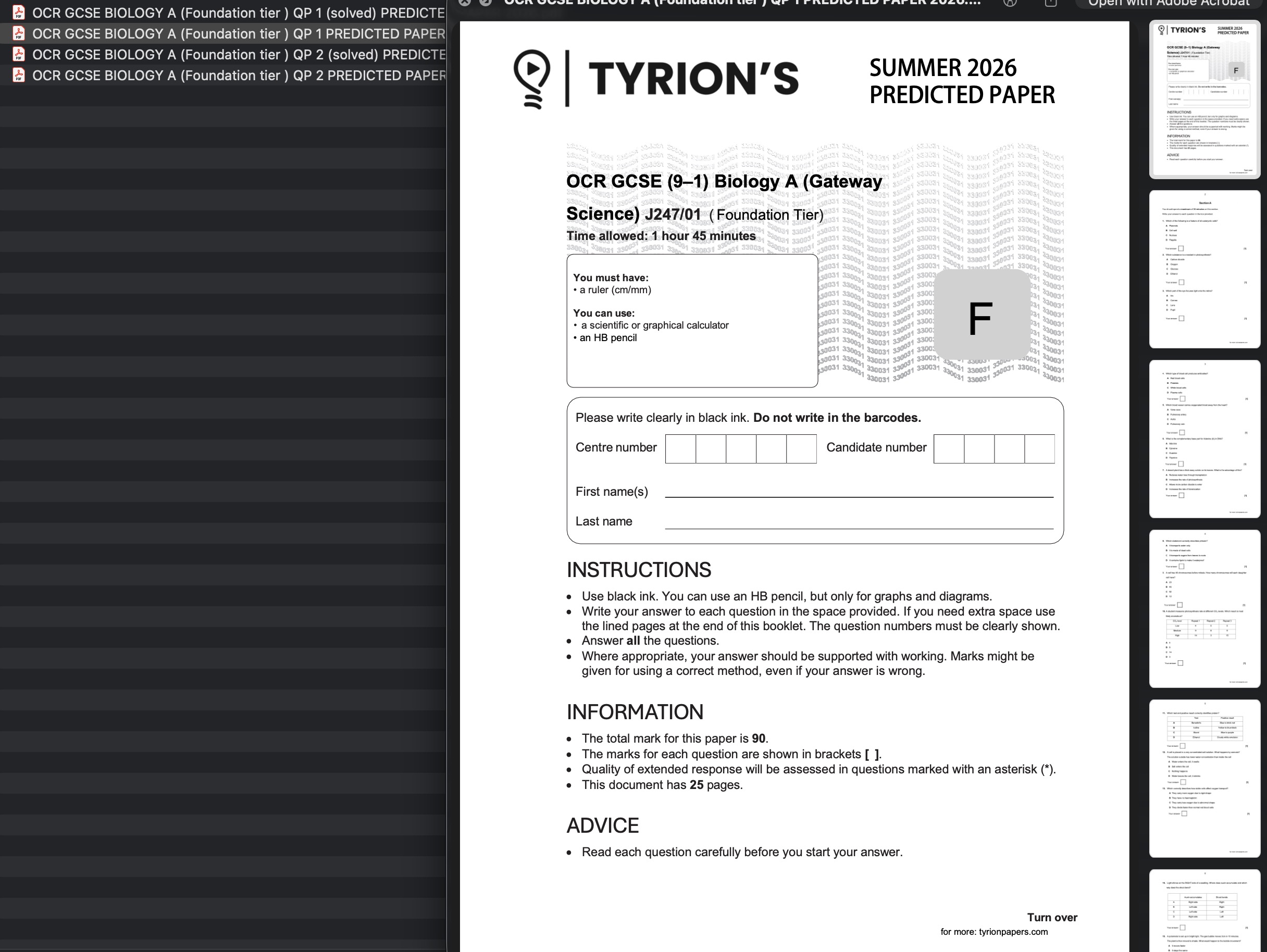 OCR GCSE Biology A Foundation 2026 Predicted Papers