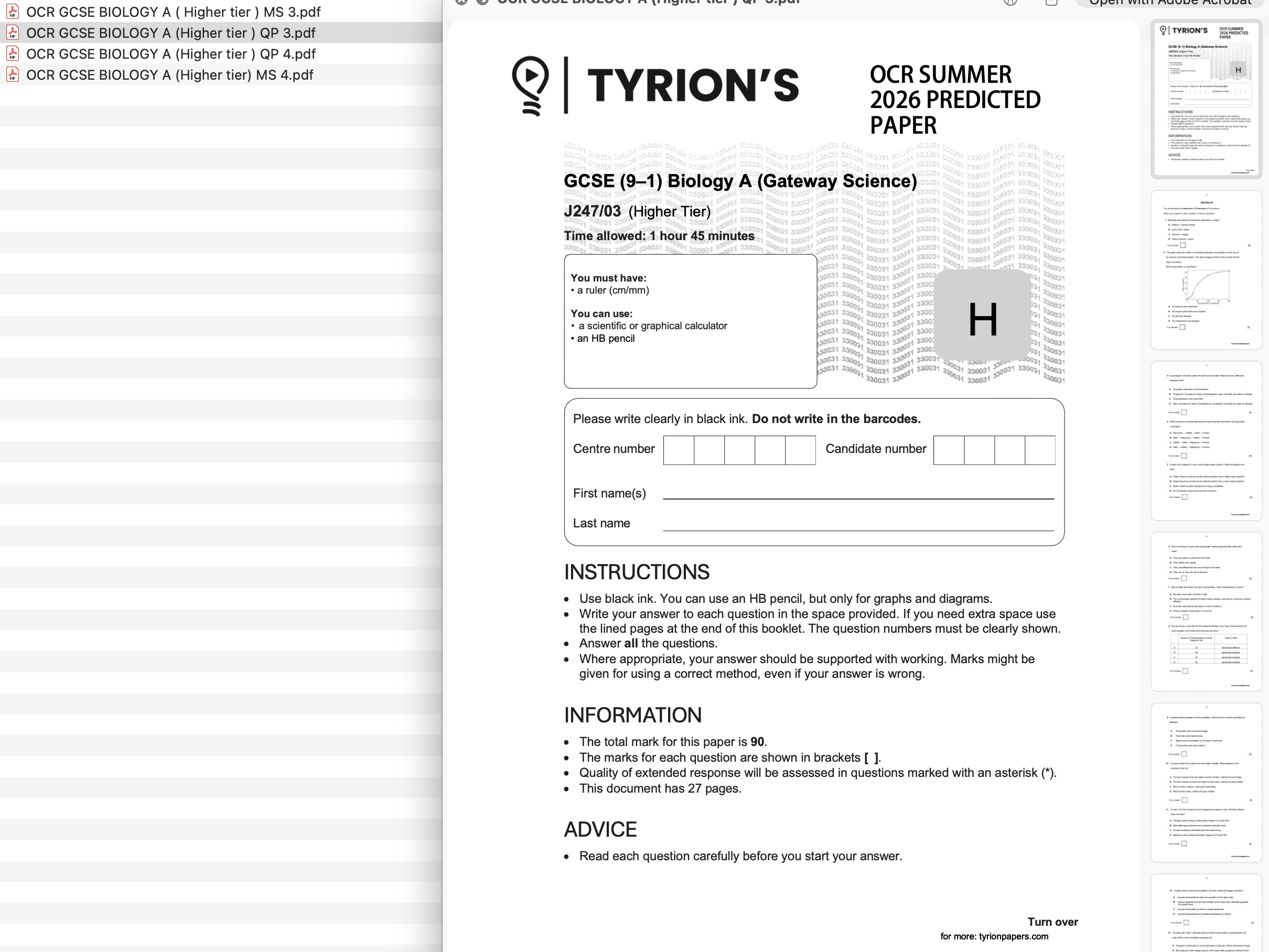 OCR GCSE Biology A Higher 2026 Predicted Papers