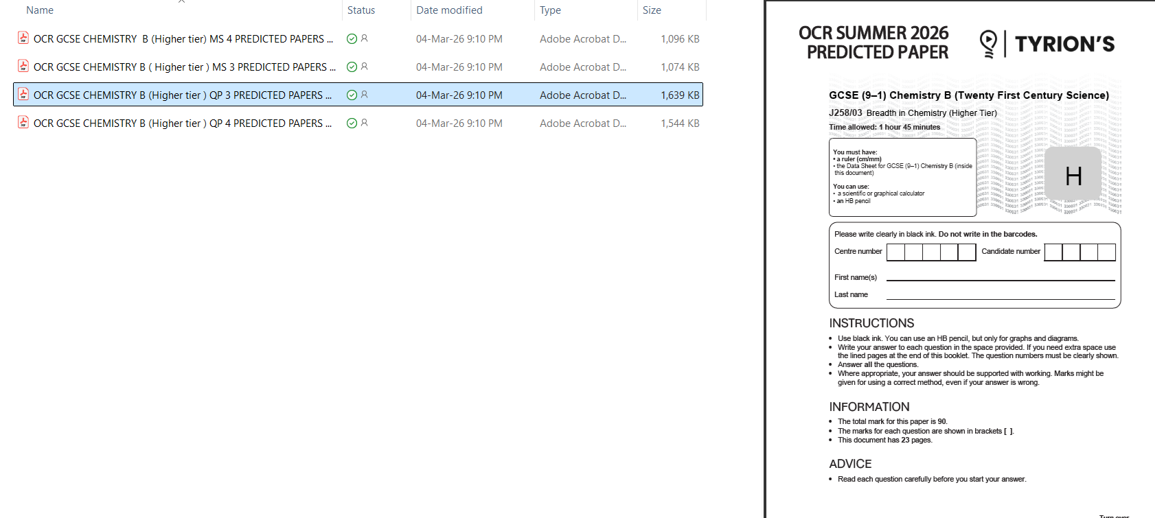 OCR GCSE Chemistry B Higher 2026 Predicted Papers