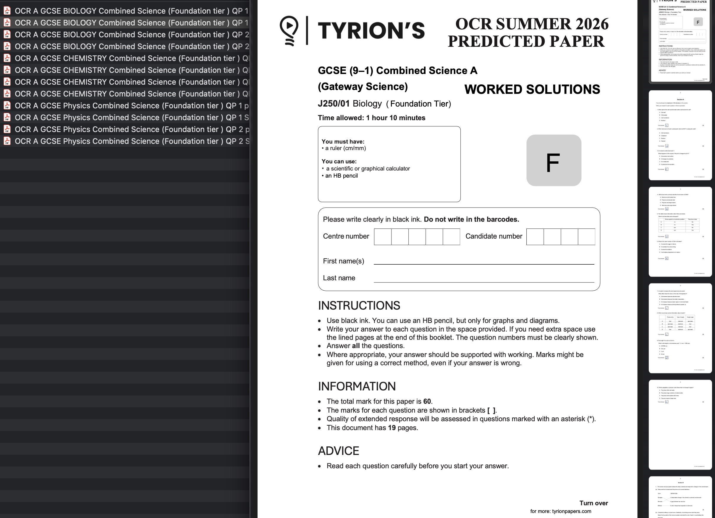 OCR GCSE Combined Science A Foundation 2026 Predicted Papers